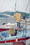 In partenza per la Mini Transat nel 1979, a Penzance, Inghilterra.