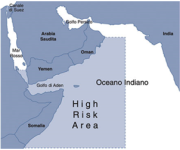 La High Risk Area (Hra) è un vasto tratto di oceano Indiano che si estende tra Africa e Penisola Araba, al largo delle coste di Oman, Yemen e Somalia. Questa comprende anche il Golfo di Aden passaggio obbligato per il Mar Rosso e quindi per il Canale di Suez. L’associazione Ukmto effettua il monitoraggio degli attacchi per mano di pirati.