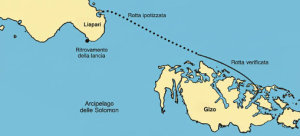Fino a ora le barche hanno battuto la congiungente tra Gizo e la laguna di Liapari, un po’ più a Nord per tenere conto della corrente, ma se la barca di Jorg si è arenata tre miglia a Sud, vuol dire che forse bisogna cercare più giù. Forse, all’arrivo del fortunale, quando il vento è saltato a Nord, Jorg si è reso conto di non poter navigare controvento ed è andato a cercare ridosso in una baia che si trova 4 miglia più a Ovest. Forse è stata la violenza del mare a farlo scarrocciare verso Sud. Forse…