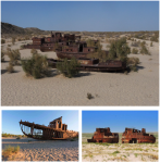 Dove prima si vedevano un’enorme distesa di acqua e le navi partire per pescare il pesce che poi veniva pulito, tagliato e inscatolato nelle fabbriche sovietiche, oggi c’è solo deserto. La differenza tra allora e oggi, incredibile se si pensa che la trasformazione è avvenuta in meno di settant’anni, è raccontata nel museo di Muynak, città che prima si trovava sul bordo del lago: oggi, ad affacciarsi dal piazzale antistante, si vede solo deserto e qualche relitto di barca che ricorda i tempi passati.