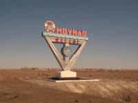 Uno dei cartelli che annunciano Muynak