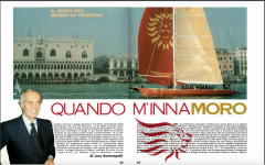 La mattina dell’undici marzo, una domenica, il Moro di Venezia di Raul Gardini, la sua prima barca per la Coppa America, si è presentato al mondo, dalla sua città. Sedeva su un invaso caricato su un pontile, completamente fasciato in teloni bianchi.