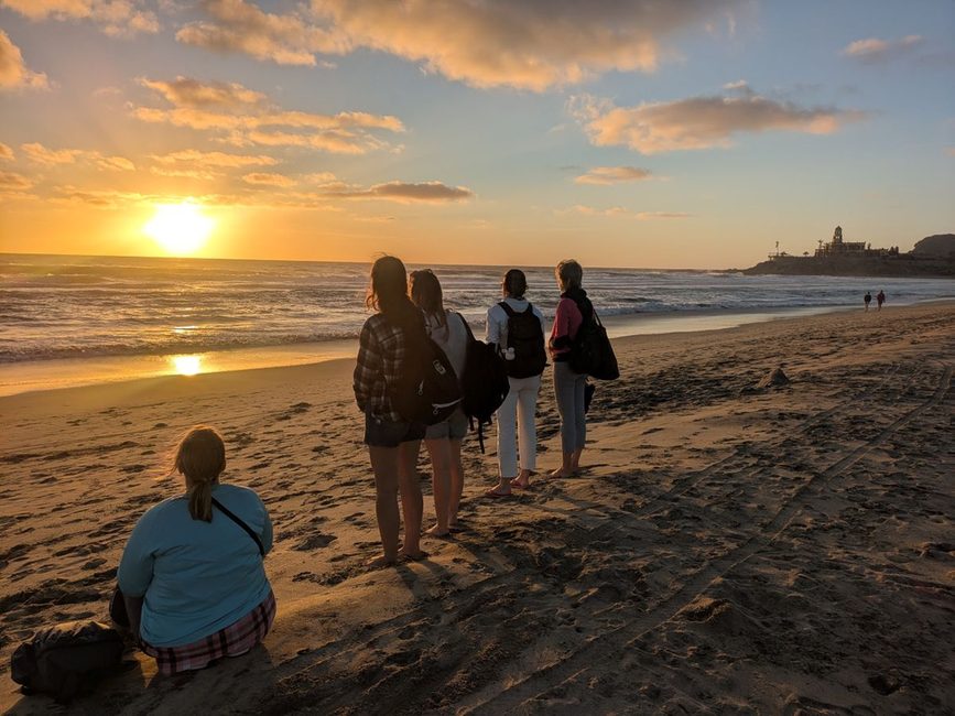 Dopo la crociera abbiamo esplorato il Messico via terra: abbiamo festeggiato il carnevale, ammirato i surfisti sulle spiagge sulla costa Pacifica, visitato il famoso Hotel California a Todos Santos, e poi abbiamo fatto una gita a Puerto Chale per vedere le balene grigie.