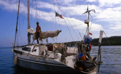Freccia aveva un merito immenso, anzi ne aveva tanti, ma ne aveva uno in particolare che è l’andatura di poppa, e siccome in giro del mondo nei Tropici si fa l’80% con vento in poppa era l’ideale per me. Poi ne ha altre su cui non voglio soffermarmi perché andiamo sul tecnicismo. Ho cominciato a prepararla in un paio d’anni per fare in modo che avesse tutte le attrezzature per l’oceano L’ho attrezzata di persona con pilota a vento, i gradini sull’albero, l’SSB, il solare, l’eolico e altre attrezzature indispensabili per renderla autonomo.