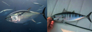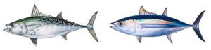 A sinistra il tonnetto alletterato, a destra il tonno alalunga