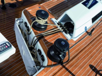 Una soluzione ancora più sicura consiste nel passare la drizza su due winch: sul primo si effettuano due giri, poi la drizza passa al winch elettrico con altri giri. In caso di emergenza, la drizza può essere bloccata sul primo winch e liberata da quello elettrico.