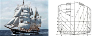 Il risultato è un ottimo compromesso: una carena capacitiva che cede poco in termini di prestazioni veliche, grazie a scelte quali la spiccata e lunga stellatura, la stabilità di forma ottenuta con una larghezza contenuta (tenuto conto che il baricentro si trova 1,36 metri sopra la linea di galleggiamento medio), il costante bilanciamento delle linee di prora e di poppa a nave sbandata entro i valori di stabilità iniziale (10°-12°), il buon equilibrio nella posizione delle alberature e del centro velico rispetto al centro di resistenza laterale (che mantiene il veliero leggermente orziero), l’elevato bordo libero, la minima rientranza delle murate (tumble-home), i bracci raddrizzanti generosi che consentono teoricamente di tenere molta vela a riva fino a venti di forza 6, e la poppa moderatamente sovraimmersa per favorire la direzionalità. Doti che conferiscono marinità, buon governo e discreta velocità in un ampio arco di andature.